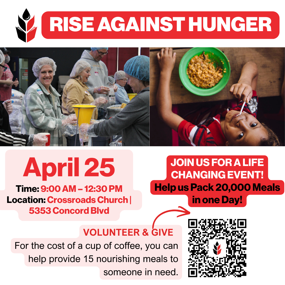 At Crossroads, making a positive impact in our community is at the heart of who we are—and our Rise Against Hunger is just one way we do that.
